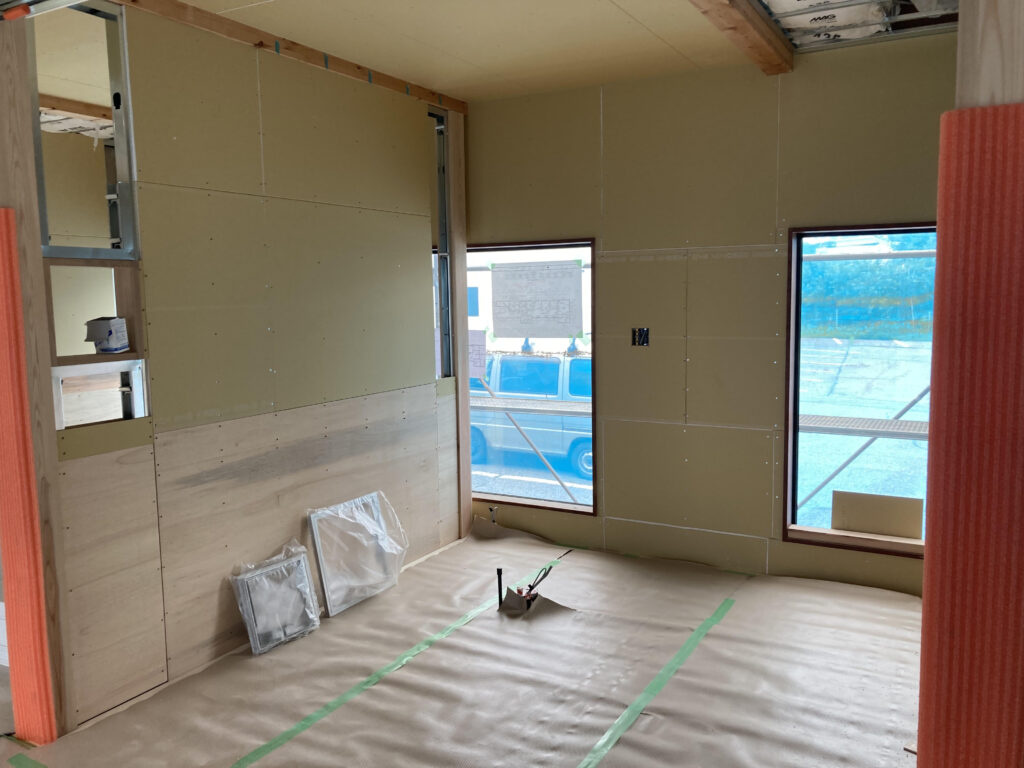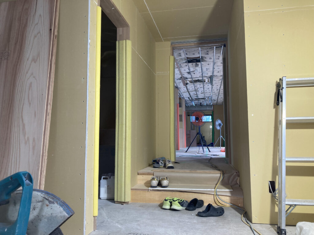 壁の下地も張り付けられ空間が仕切られることで診療所の全体がだいぶはっきりしてきました。