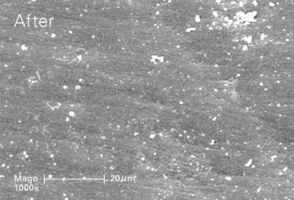 - 超微粒子のパウダーを使用するので、歯や詰め物・被せ物などを傷つけずに優しくクリーニングできます。